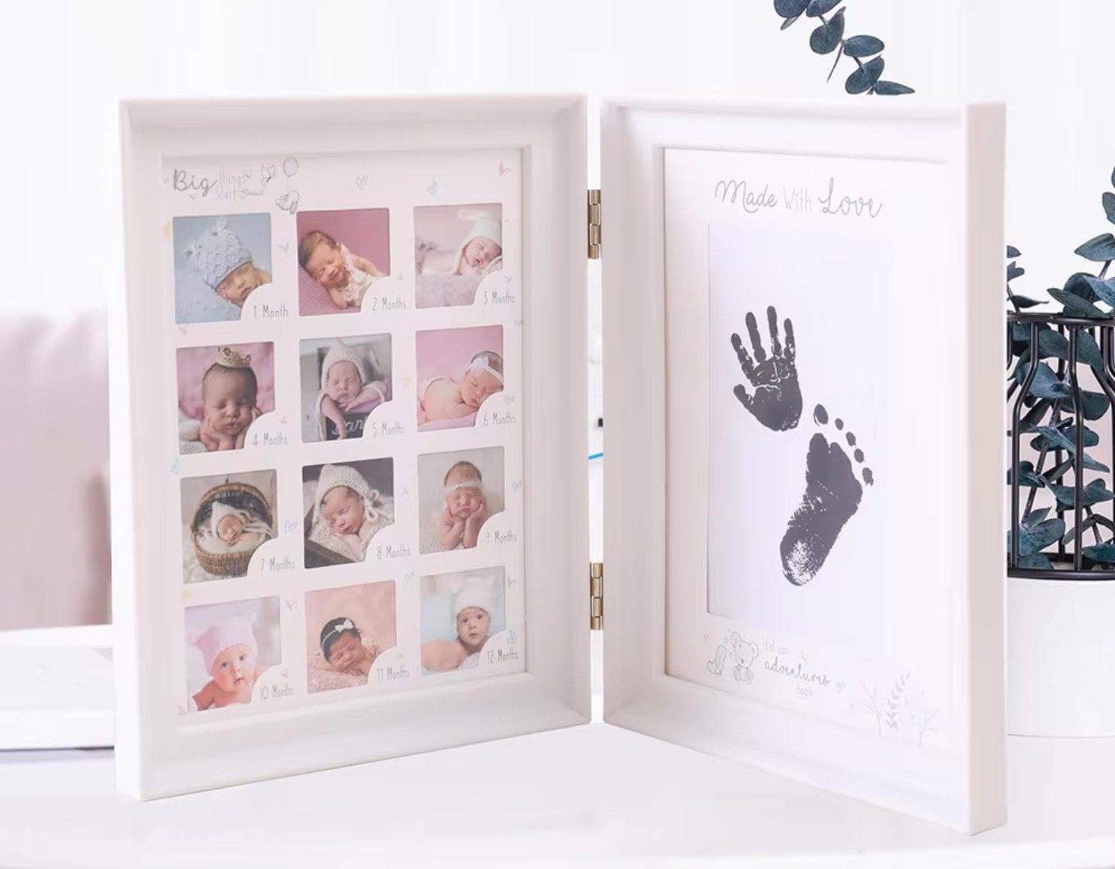 - 0–12 Month Milestone Display – Dedicated photo slots to capture each month of your baby’s first year.